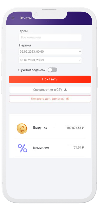 В нашем приложении люди могут передать деньги в храм через заказ требы или пожертвование из любой точки мира. Деньги поступают на счёт храма автоматически в течение суток
